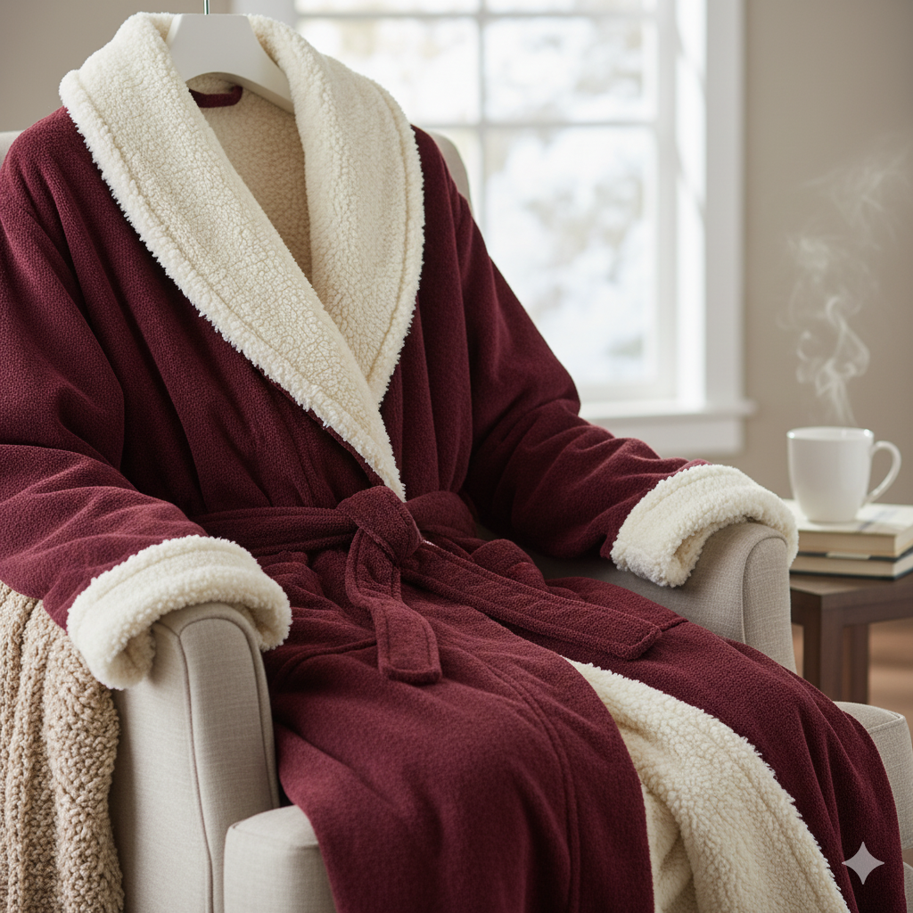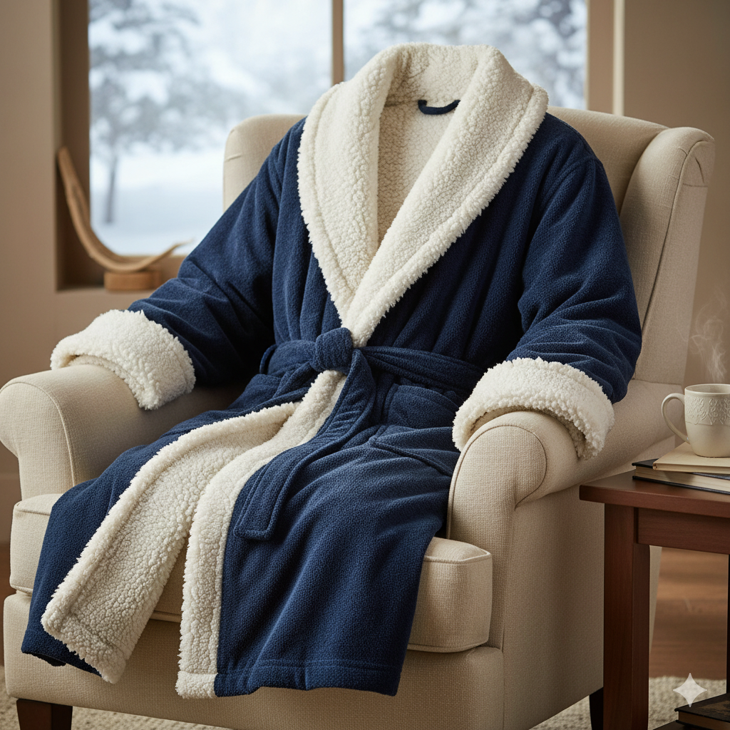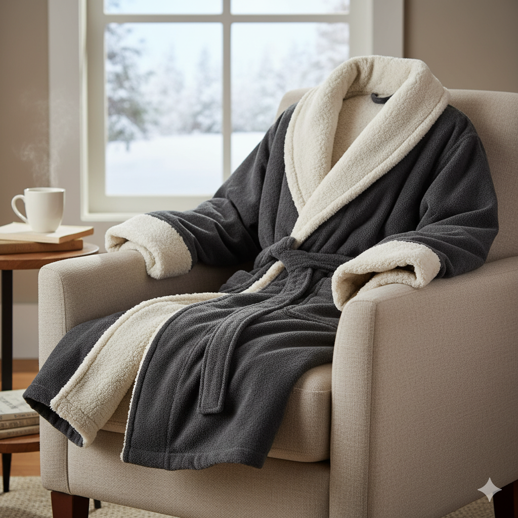 Ultra-warm fleece-lined robe for cold weather comfort.