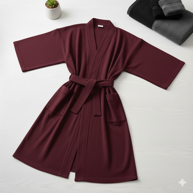 Plush fleece lining 500 GSM with terry cloth exterior. Maximum warmth and coziness. Material: Terry cloth outer with fleece lining. Colour: Charcoal, Navy, Burgundy, Forest Green. Care: Machine wash warm. Tumble dry low. Features: Fleece lining, shawl collar, two pockets, tie belt, maximum warmth. Perfect for winter, cold climates, ultimate comfort. Made in India.